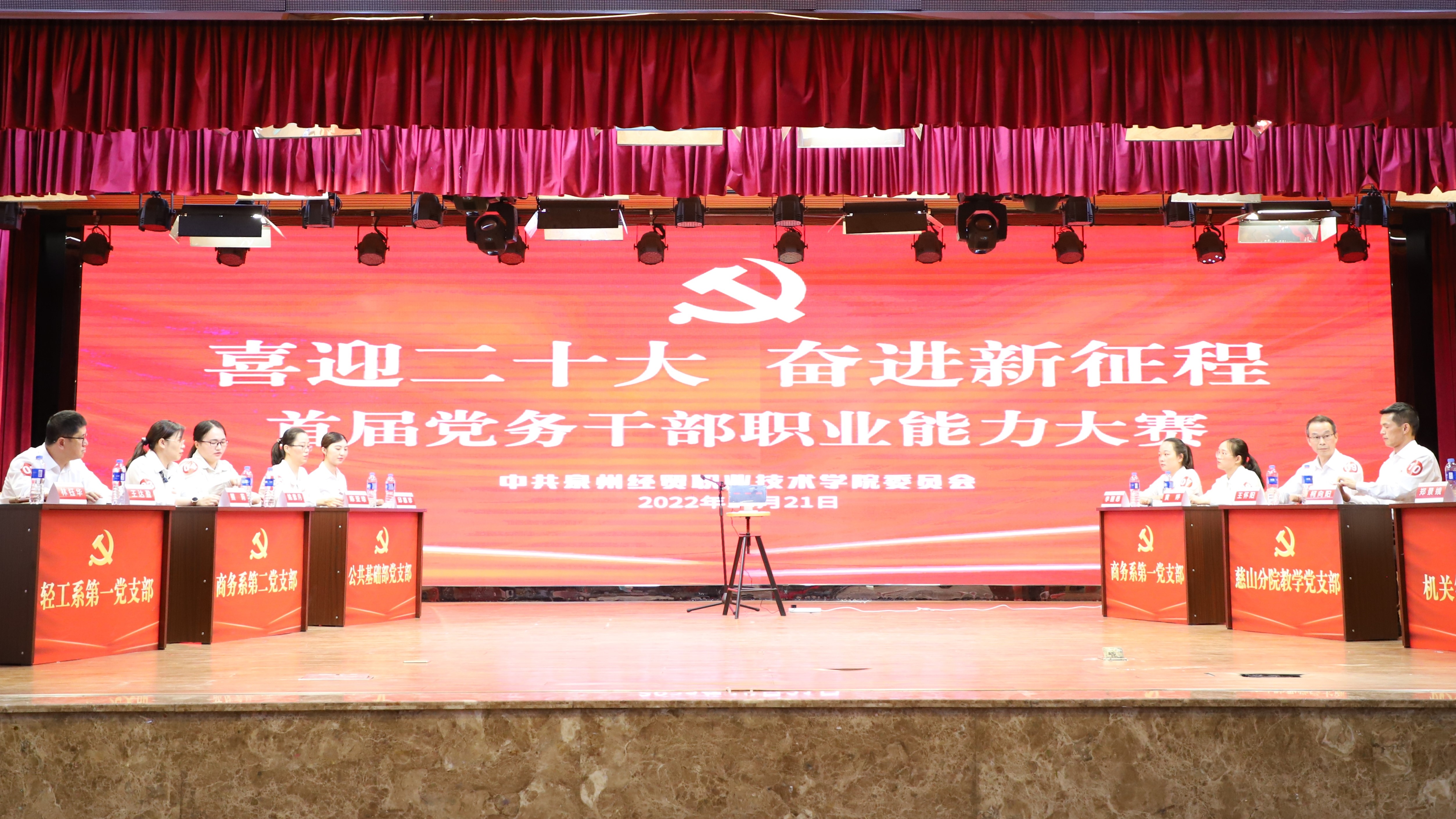 10月21日,学院在大礼堂举办“喜迎二十大 奋进新征程”首届党务干部职业能力大赛决赛。学院党委书记周文心,党委副书记、院长黄敬前,党委副书记陈金通,党委委员、副院长花文苍出席,比赛邀请有关院校党务专家担任评委。