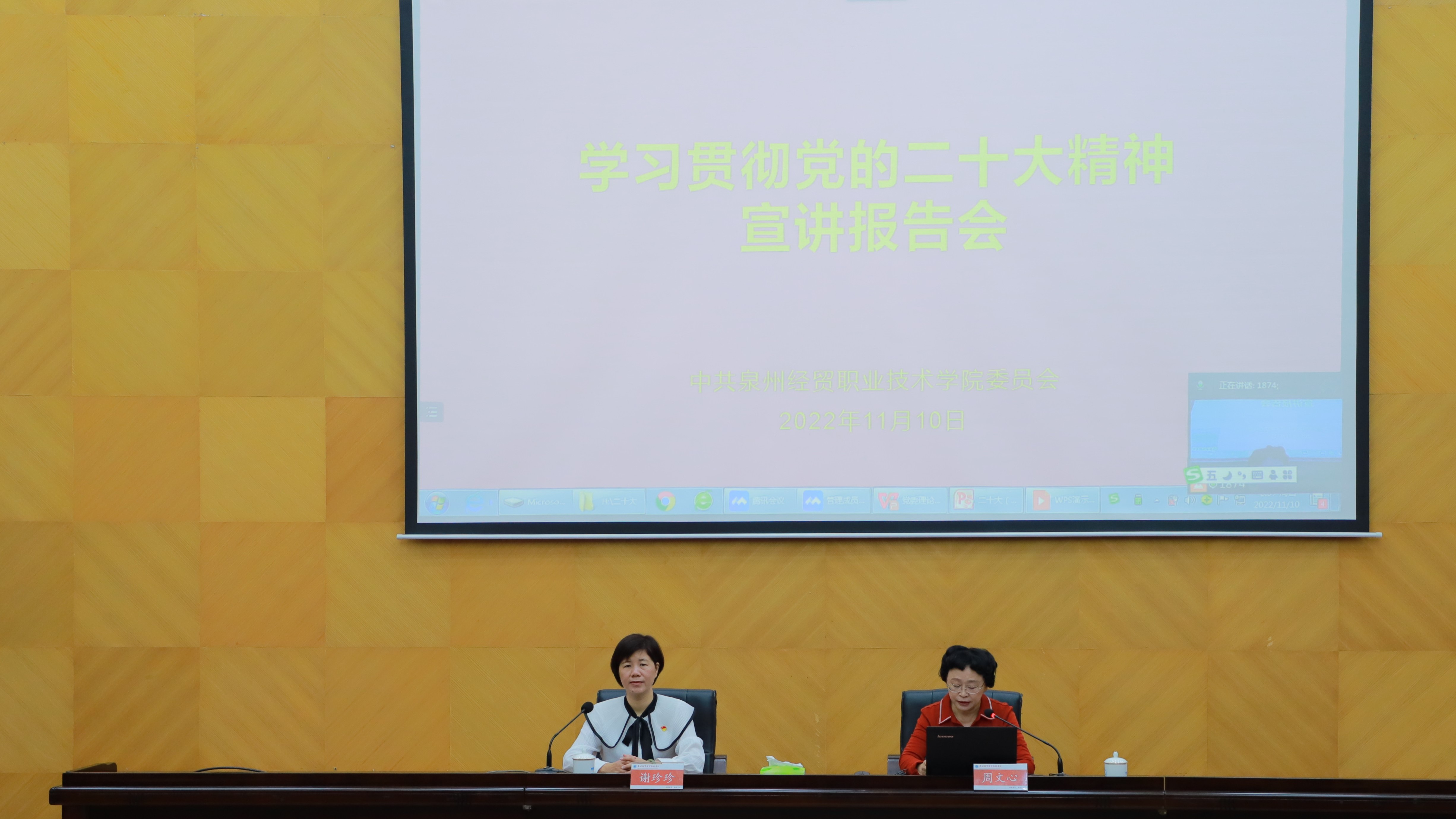 11月10日上午,学院邀请泉州市委党校谢珍珍副教授莅校宣讲党的二十大精神,党委书记周文心主持宣讲报告会。