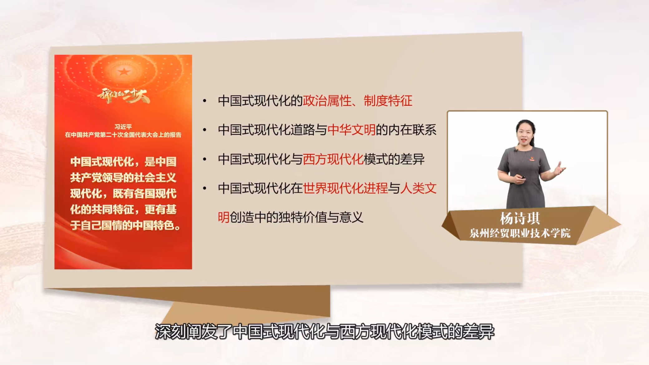近日,由中共福建省委教育工委举办的大中小学思政课金课遴选结果公布,我院思政部胡小剪老师申报的教学作品《坚定文化自信 发挥文化重要作用》获全省高职组《习近平新时代中国特色社会主义思想概论》课程组一等奖。罗雪珍、文粉娟、张玉梅老师申报的教学作品《马克思主义中国化时代化的光辉典范》获全省高职组“毛泽东思想和中国特色社会主义理论体系概论”课程组三等奖。杨诗琪老师申报的教学作品《民族复兴与中国文化现代化》获全省高职组“形势与政策”课程组三等奖。这是我院思政部持续推进思想政治理论课建设中获得的重要成果。