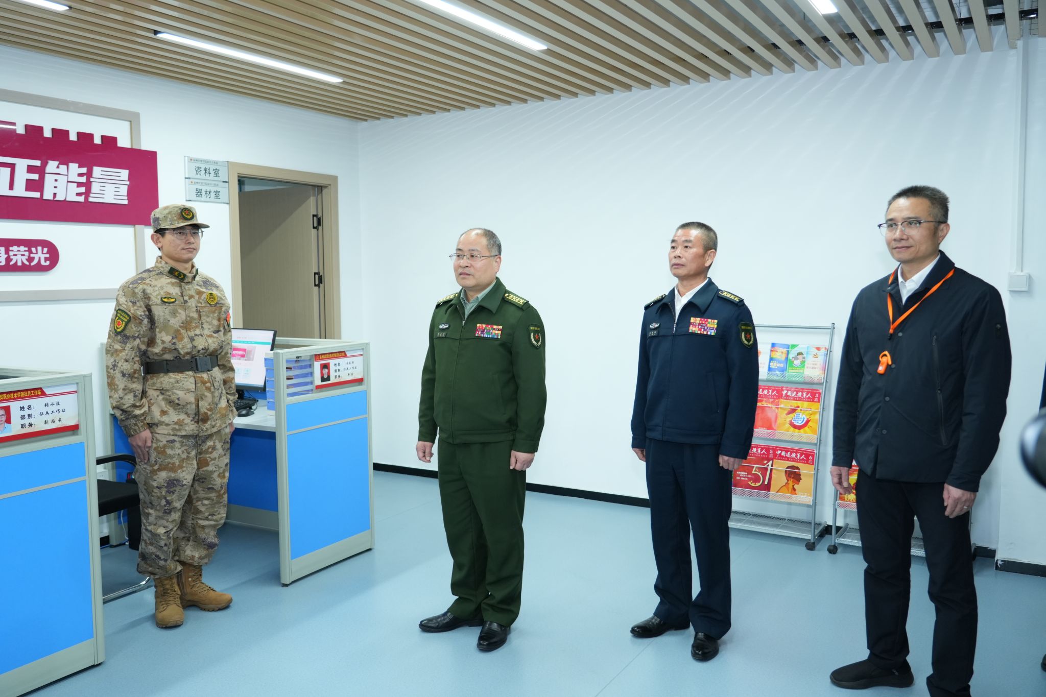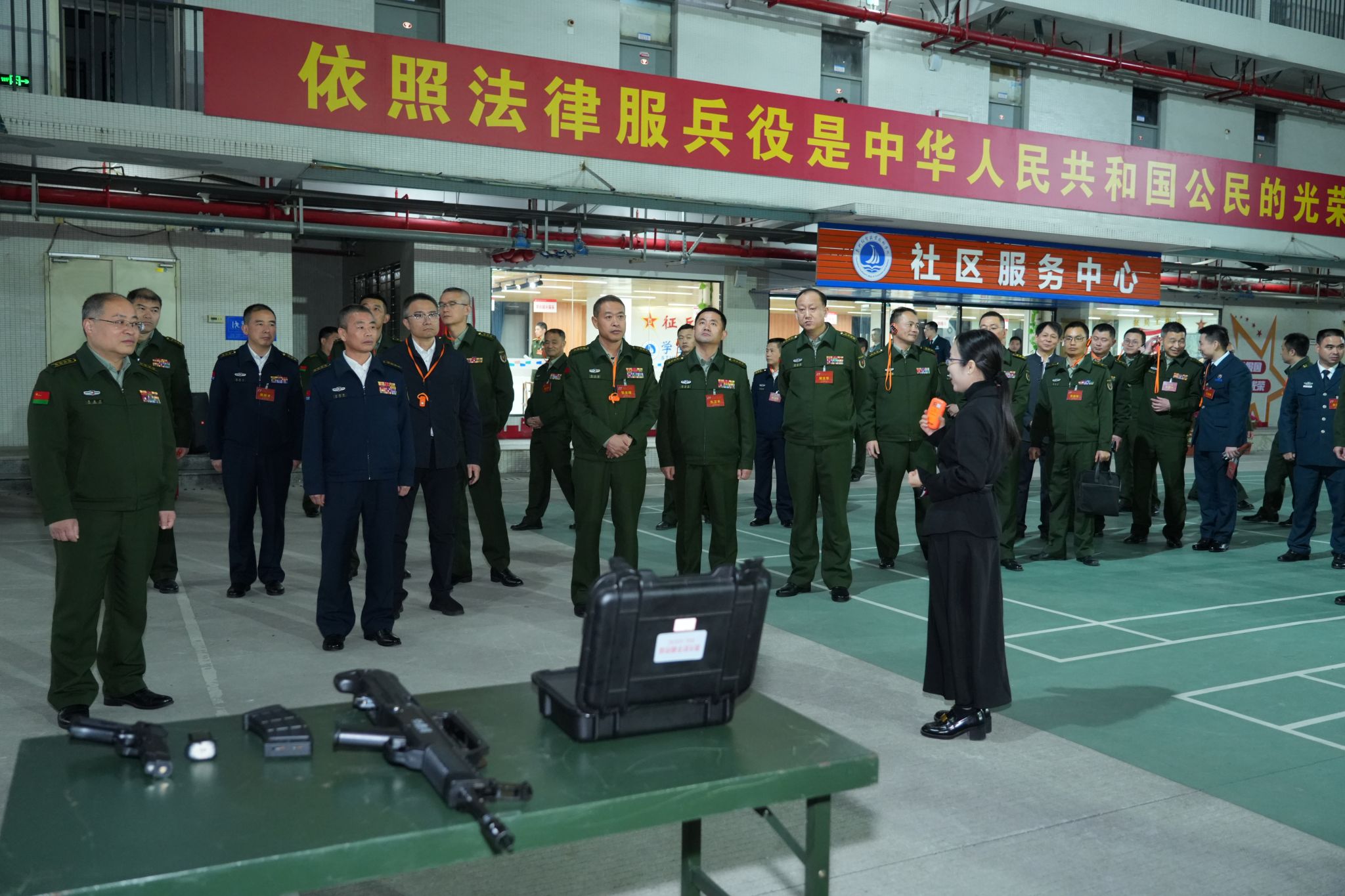 观摩团随后走进征兵工作站的“一站式”服务大厅、办公室和设备室,详细了解功能分区和运行机制。大厅内设有政策咨询区、应征报名区、资助服务区、退役复学区、体检预检区、电子书籍阅读区及智能化征兵宣传屏;设备室的物品架上,分类清晰标注着品名的各种军训装备整齐摆放,让人耳目一新;工作站办公室外侧的广场边,轻武器射击系统特别显眼;大厅对面布设“光辉历程”和“风采墙”两面主题墙,分别展现着我军发展的光辉历程和我校优秀退役大学生的卓越风采。工作站将军旅文化融入环境设计,通过荣誉展示、互动体验等方式,有效激发了青年学子的参军热情。从门外的征兵宣传广场到站内的“一站式”服务窗口,处处彰显着学校对国防教育的精心谋划。