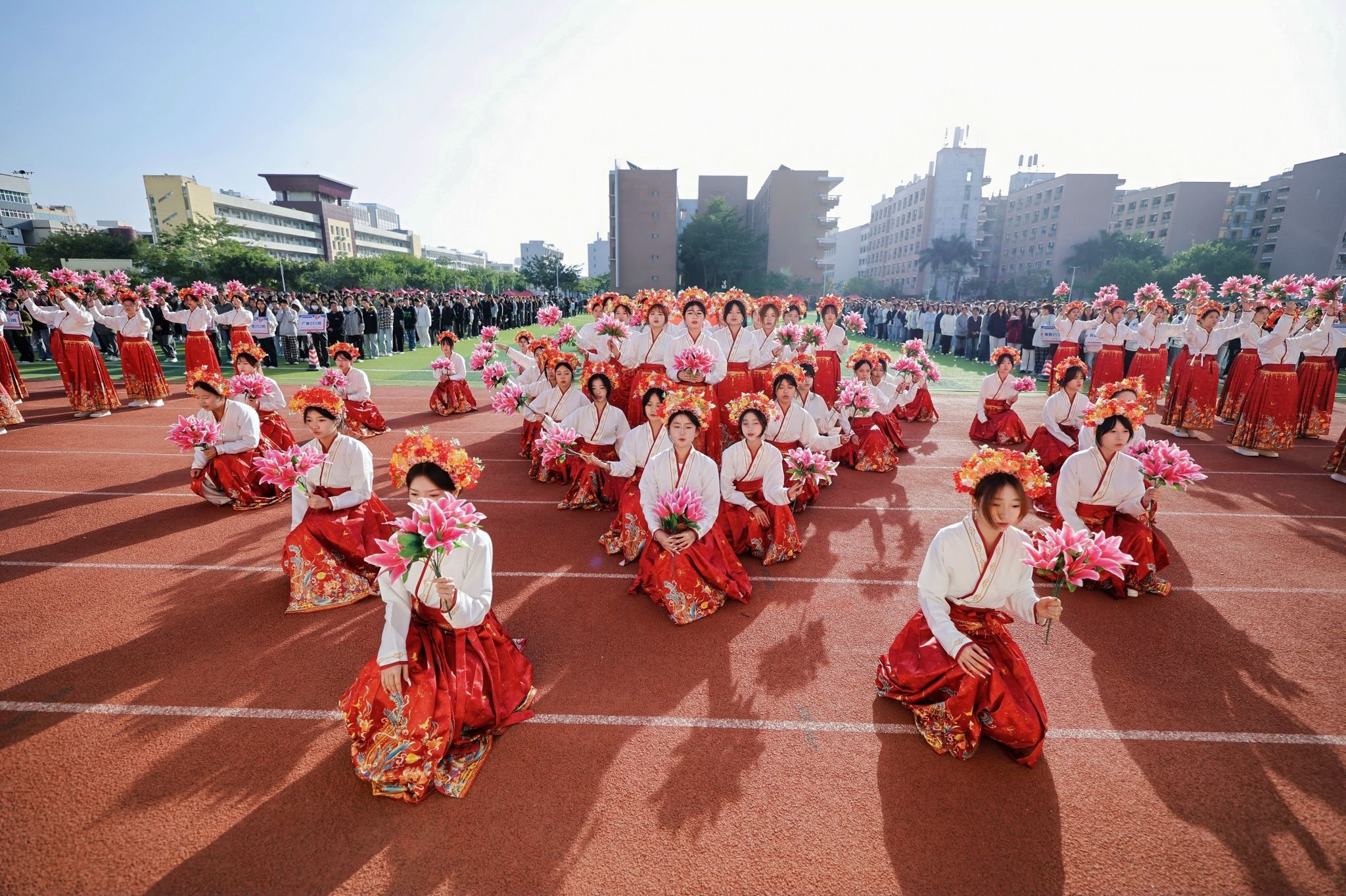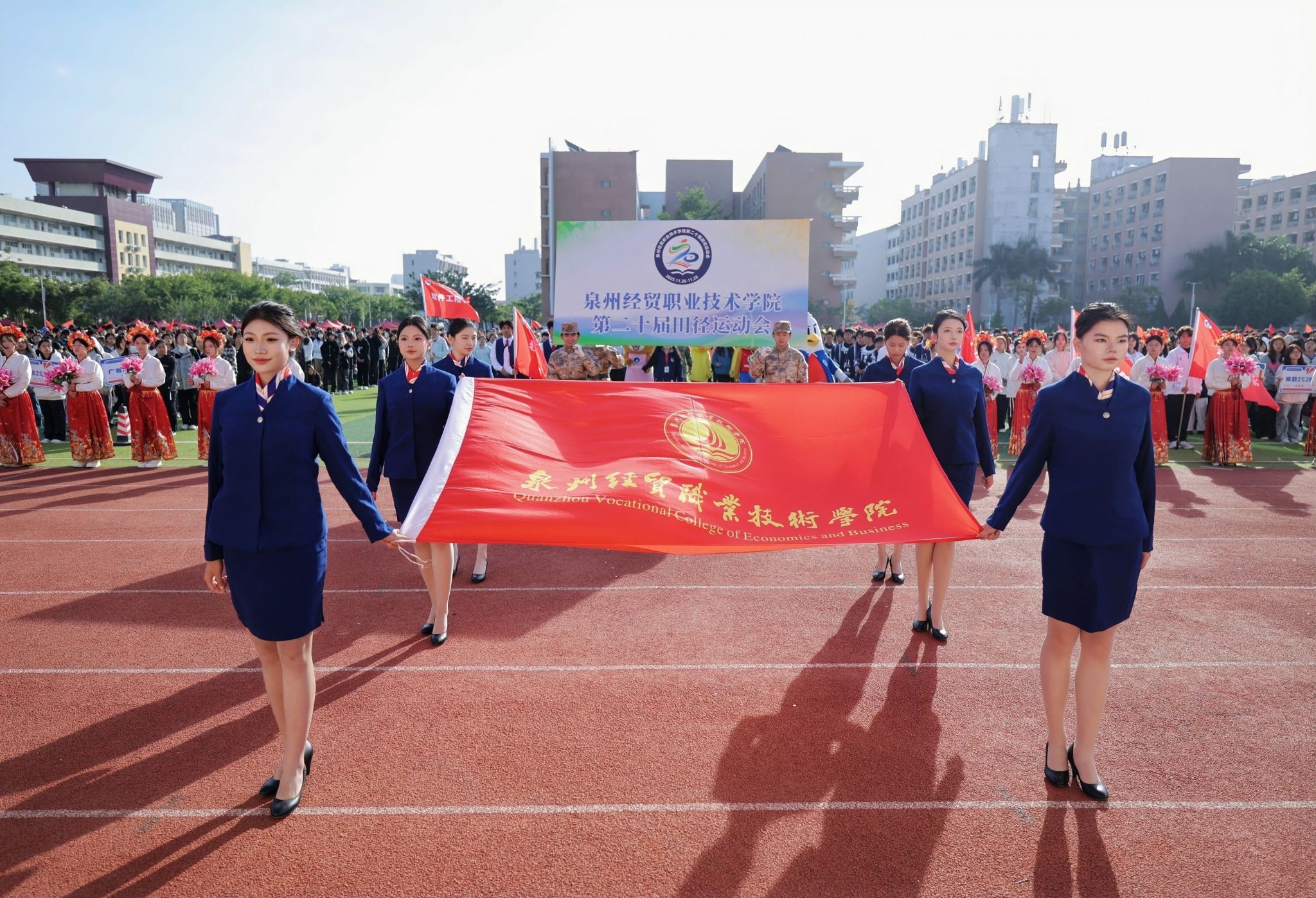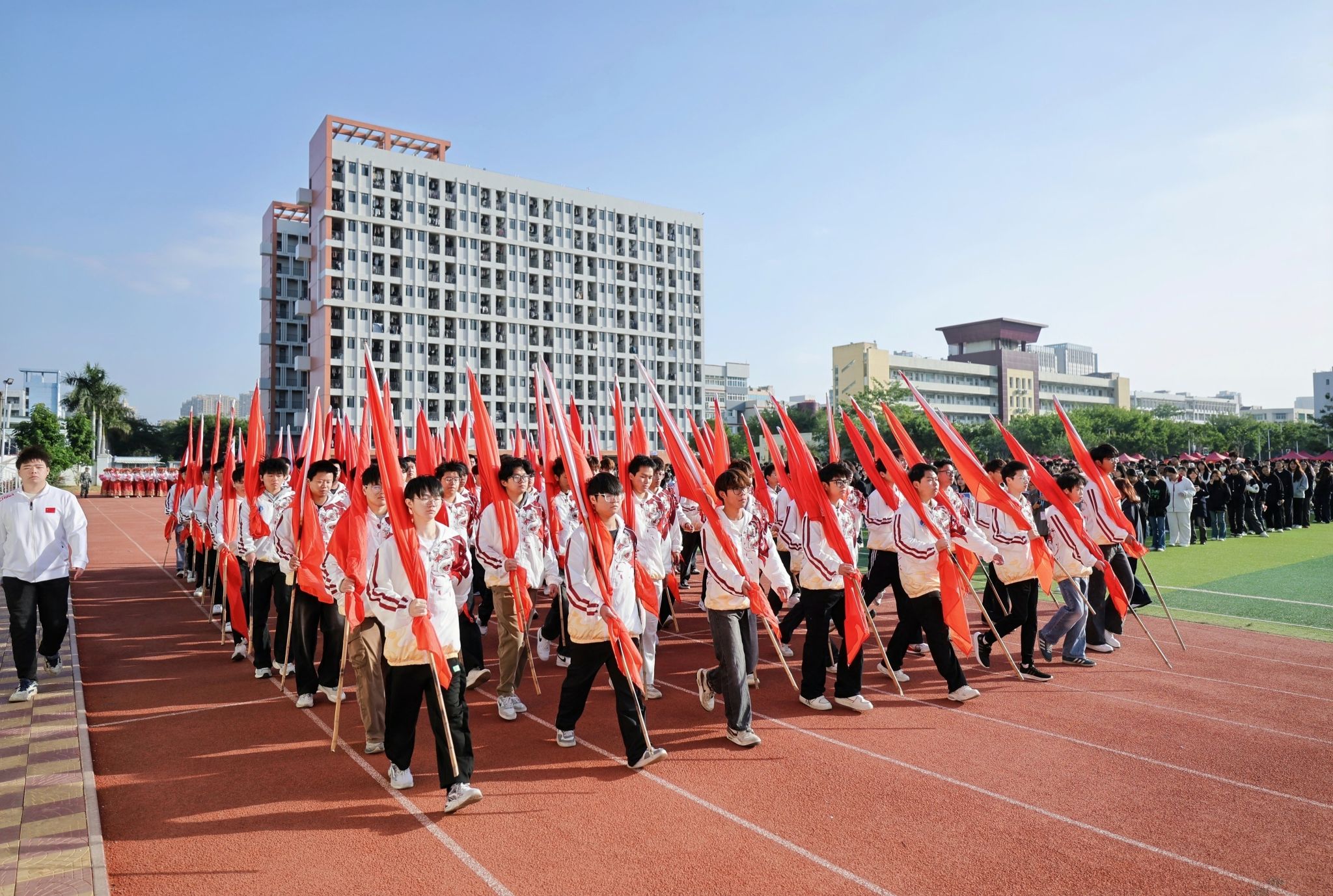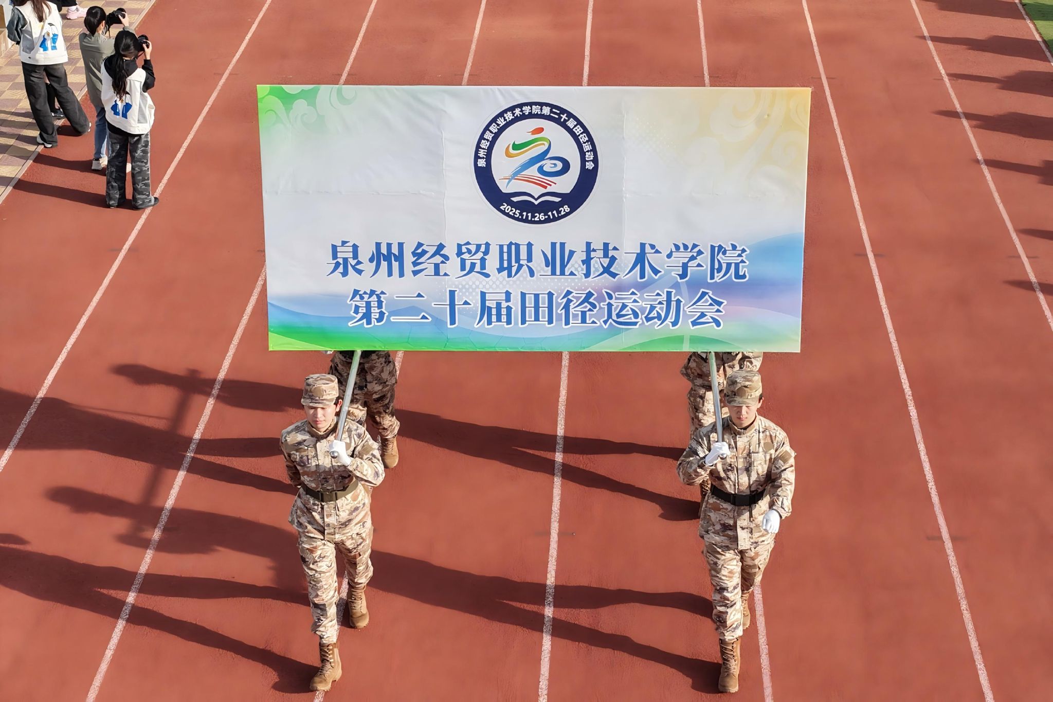 学校党委副书记、运动会组委会副主任陈金通致开幕词并宣布运动会正式开幕。他在讲话中回顾了学校二十届运动会的传承与积淀,指出体育赛场既是“五育并举”成果的检阅台,也是“技能成才、体育铸魂”精神的展示台。他指出,学校始终将体育融入人才培养全过程,完善体育设施、开设特色课程、发展龙舟和气排球等体育社团,一年来学子在全国青少年龙舟锦标赛、中国大学生龙舟锦标赛、福建省气排球联赛等赛事中屡创佳绩,印证了经贸学子“既能锤炼技能,也能闪耀赛场”的综合素养。他强调,全体运动员要以工匠精神参赛、以团队精神拼搏、以职业素养守规,裁判员要秉持公平公正执裁,全体师生要共同营造文明有序的观赛氛围,将赛场的拼搏精神转化为钻研技能、成长成才的不竭动力。
