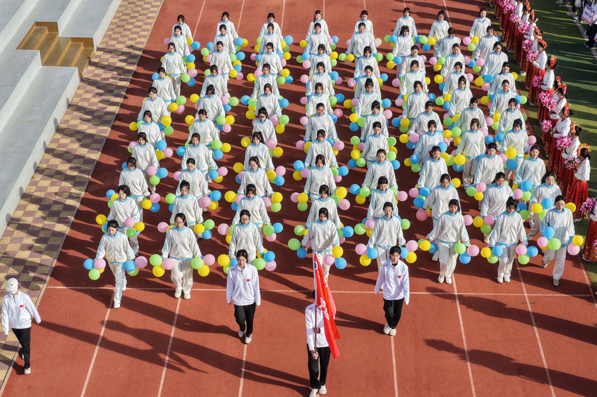 开幕式在庄严而热烈的氛围中启幕。伴随着激昂的运动员进行曲,国旗方阵率先入场——由学校老兵会成员组成的方阵步伐整齐、气宇轩昂,高擎的五星红旗凝聚着全体师生的爱国情怀;紧随其后的校旗方阵由轻工学院空乘专业女生组成,鲜艳的校旗熠熠生辉,彰显着“明德、善学、强技、力行”的校训精神。本届运动会会牌、吉祥物JIMO和易班熊方阵、管理学院80名学子组成的红旗方阵、会计学院80名同学组成的花束方阵依次亮相。八十面红旗如火燎原,五彩花束绚烂多姿,生动勾勒出经贸学子的青春底色。
