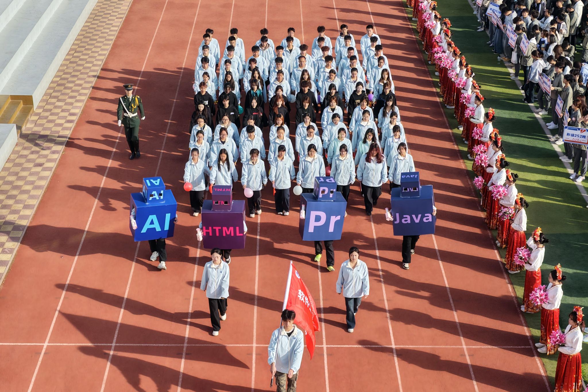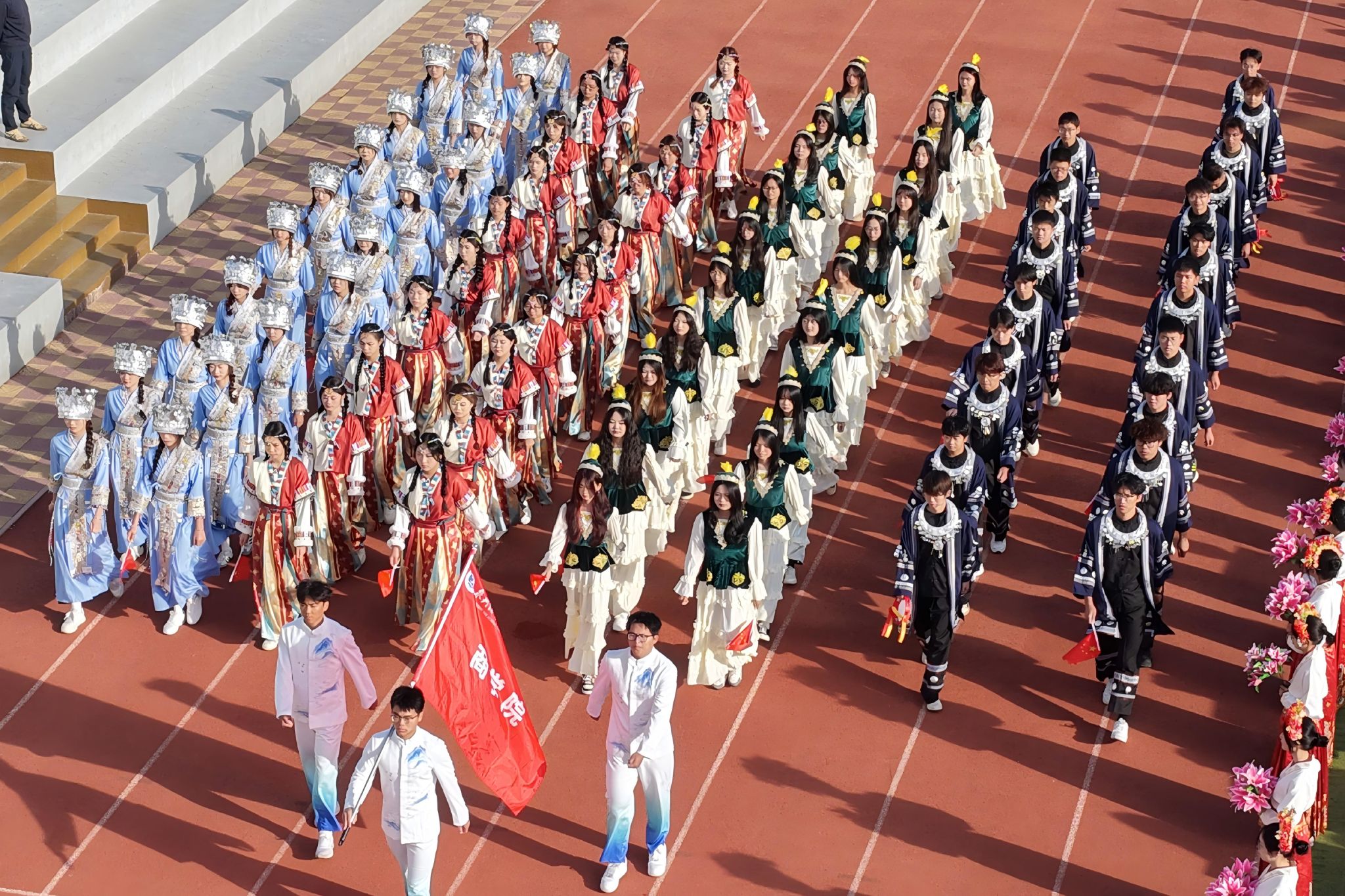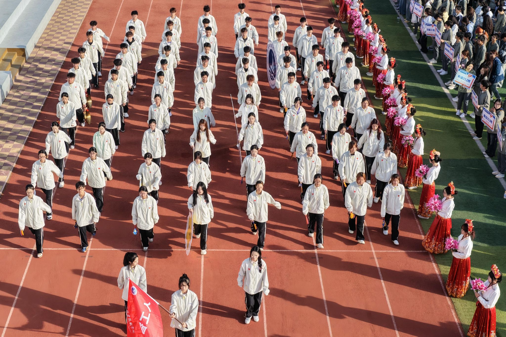 各二级学院运动员代表方阵的入场将现场氛围推向高潮。会计学院方阵神采飞扬,以“厚德、博学、诚信、笃行”的院训诠释青春担当;人工智能学院代表队带着“代码重构世界,算法定义未来”的信心而来,作为上届甲组团体总分第一的卫冕之师,尽显数字人才的昂扬风貌;商学院方阵步伐坚定,彰显未来商海弄潮儿的自信从容;慈山分院(人文与艺术学院)方阵融合人文情怀与竞技活力,诠释“文以载道,艺行天下”的院训内涵;轻工学院方阵凭借空乘、汽车专业的亮眼竞赛成绩,献上娘惹服饰走秀的特色展示,传统与现代交融尽显匠心;软件学院方阵朝气蓬勃,以“追光而遇,沐光而行”的姿态奔赴赛场;经济管理学院方阵则以国家级、省级竞赛的丰硕成果为底气,立志在赛道上跑出“经济”加速度。各方阵步伐铿锵、口号嘹亮,充分展现了经贸学子团结向上、奋勇争先的精神风貌。