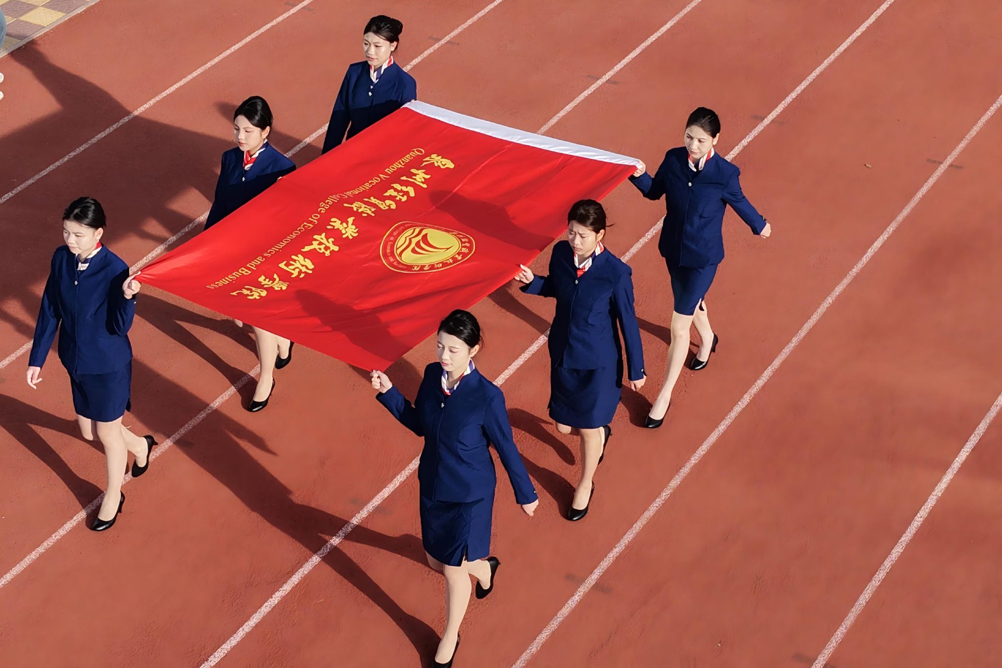 11月26日上午,我校第二十届田径运动会开幕式在校园运动场举行。学校领导、各二级部门主要负责人、体育教研室等运动会组委会成员出席开幕式,全体师生齐聚赛场,共同见证这场属于经贸人的体育盛会。学校党委委员、副校长张庆武主持开幕式。