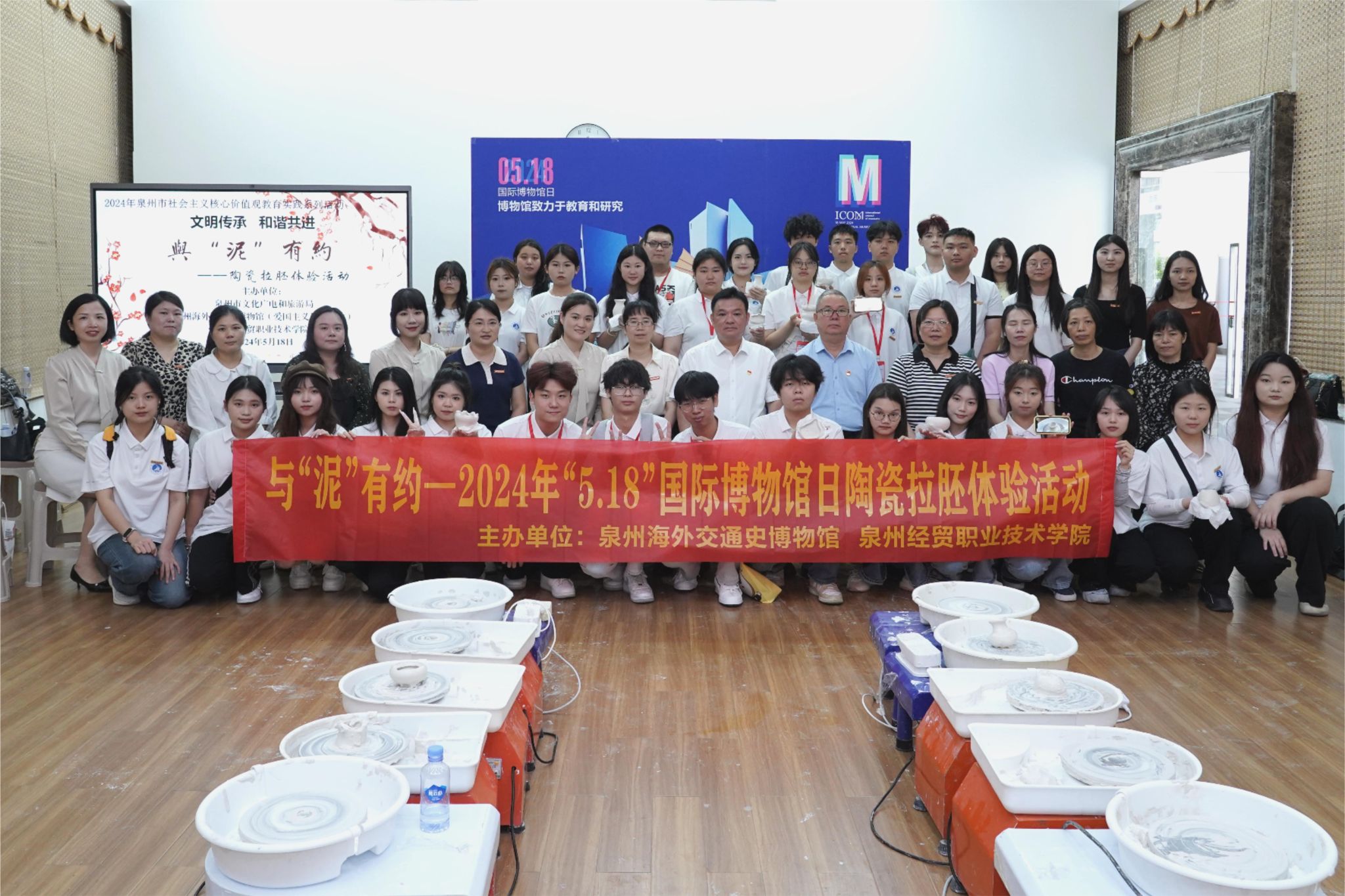5月18日,泉州经贸职业技术学院与福建省泉州海外交通史博物馆(以下简称“泉州海交馆”)结对共建“大思政课”实践教学基地,开展“守护世界遗产 传承海丝精神”2024年“大思政课”实践研修活动,共话校馆融合“大思政课”,共同探讨合作机制,助力加快构建“大思政课”工作格局,推动思政教育高质量发展。学院党委书记廖伏树,泉州市文化广电和旅游局党组书记、局长吕秀家,致公党泉州市委会主委、泉州海交馆馆长丁毓玲,学院党委委员、副院长沈永希,泉州市文化广电和旅游局党组成员、副局长出宝阳等出席活动,学院思想政治理论课教研部教师、习近平新时代中国特色社会主义思想读书社、青年马克思主义社团等学生参加。