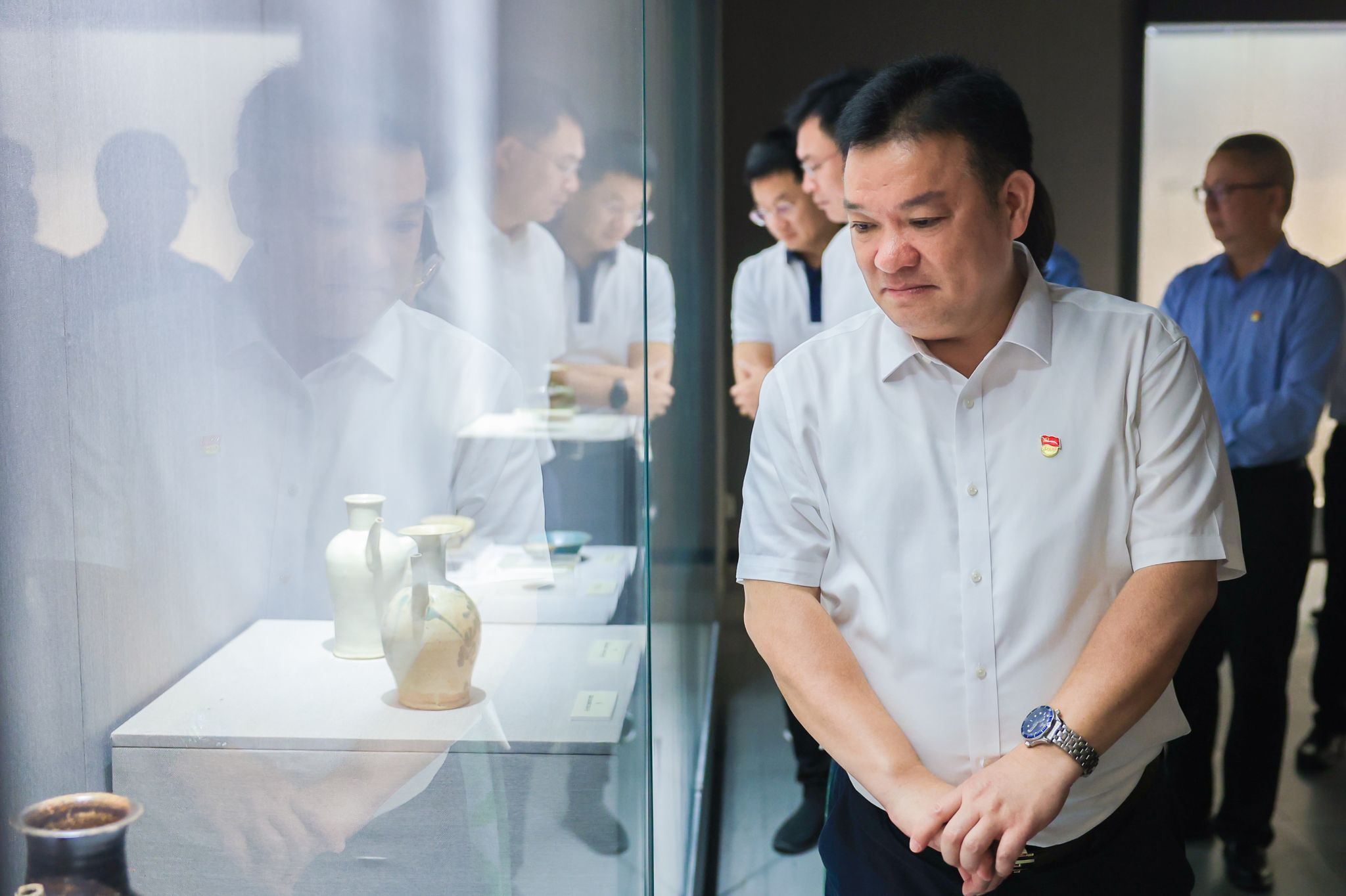 共建仪式结束后,与会领导嘉宾、专家学者、学院师生共同参观“唐风妙彩”长沙窑瓷器精品展。参观者从围绕“焰红石渚”“千瓷百态”“多彩釉色”“瓷上艺术”“童趣盎然”和“丝路明珠”六大模块,从窑址的发现,产品的品类、釉色、装饰技法、瓷塑造型,以及产品的出口外销等多维角度,全面了解了长沙窑产品独具一格的艺术风貌和在唐代海上丝绸之路上的重要历史地位。