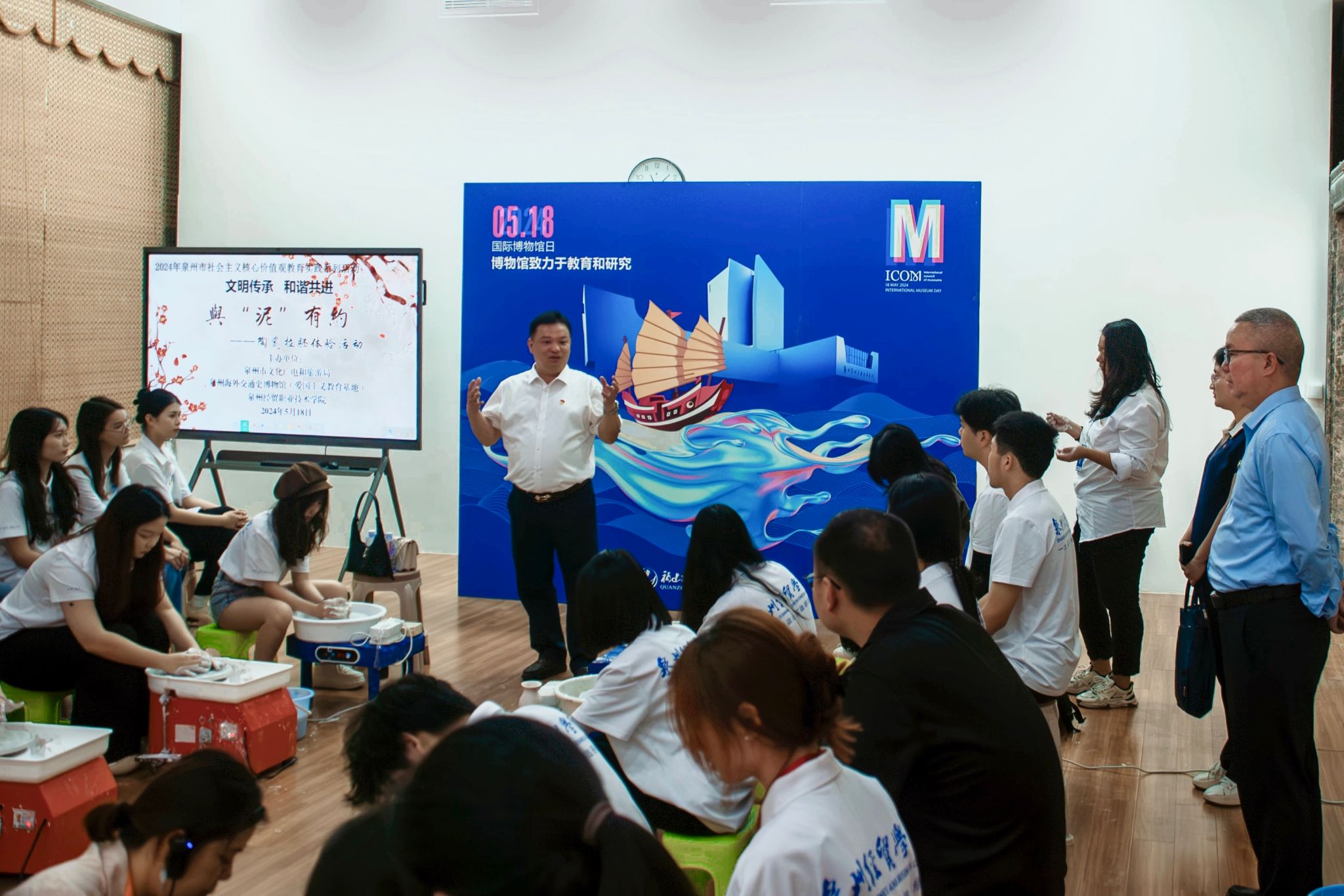 在“与‘泥’有约——陶瓷拉胚体验活动中,廖书记以陶瓷文化主题,引导学生结合陶瓷拉胚体验,认知体会陶瓷制作技艺的复杂和艰深,真切感受匠人精神,为师生带来精彩的“场馆里的思政课”。