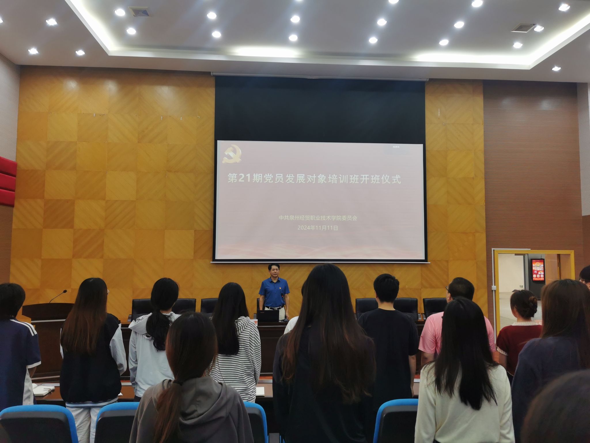 为切实做好党员发展工作,规范对党员发展对象的培养、教育和考察,提高思想觉悟,端正入党动机,严格把好党员发展“入口关”“质量关”,11月11日下午,学院在学术报告厅举办第21期党员发展对象培训班开班仪式,并邀请中共泉州市委党校教授作专题授课,22名学生党员发展对象、各系(分院)专职组织员、组织委员参加,66名学生预备党员受邀列席。学院党委副书记陈金通主持开班仪式并作动员讲话。