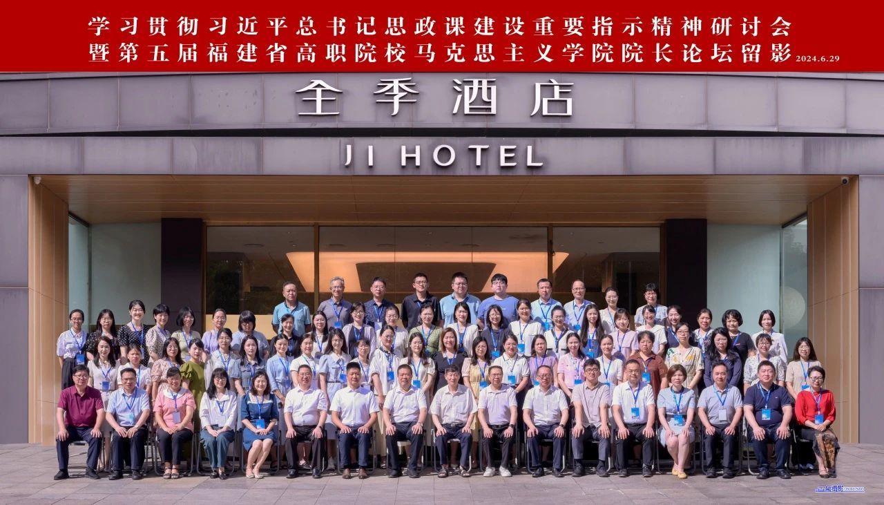 6月29日,学习贯彻习近平总书记思政课建设重要指示精神研讨会暨第五届福建省高职高专院校马克思主义学院院长论坛在福州召开,会议围绕深入学习贯彻习近平总书记思政课建设重要指示精神展开。学院思政部相关人员参加。